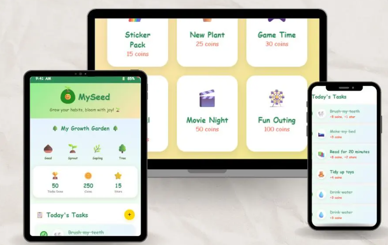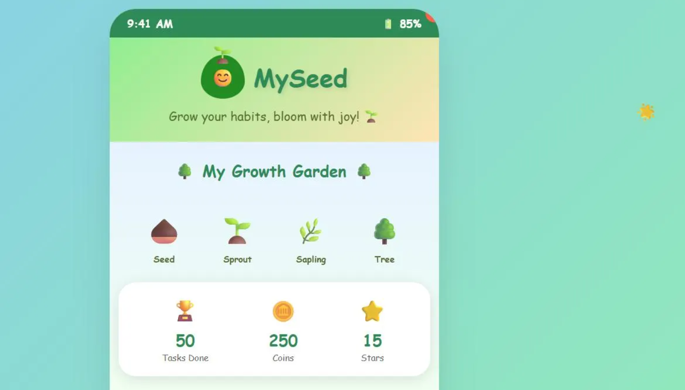 With its colorful, playful design and nature-themed rewards system, MySeed makes it easy to:
